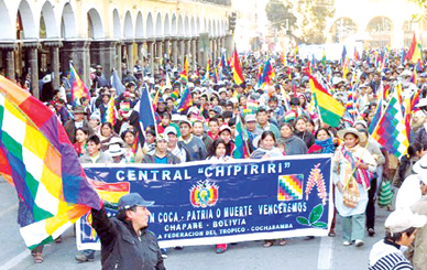 Tal el anuncio que el ejecutivo de la Confederación Sindical Única de Trabajadores Campesinos de Bolivia (CSUTCB), Damián Condori, hizo ayer por los medios de comunicación del Estado en el programa dominical ‘El pueblo es noticia.