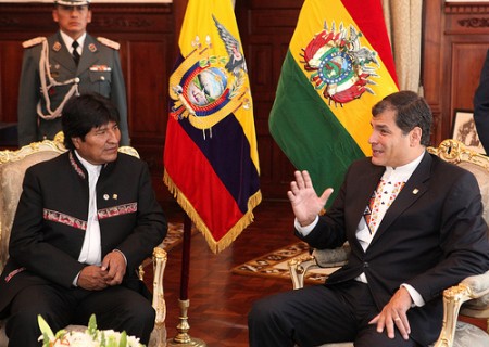 Por su parte, el presidente Rafael Correa dijo que este es un día de fiesta para Ecuador, en esta, la primera visita oficial de Evo Morales. «Esa Bolivia, ya no es vasalla, ya no es mendiga: recuperó para su pueblo los recursos naturales. Los pueblos son los que despiertan e impulsan los cambios, pero se debe reconocer el valor de Evo Morales, orgullo para Latinoamérica y el mundo», dijo el mandatario ecuatoriano.