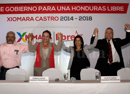 La presidenciable de Libertad y Refundación (Libre), Xiomara Castro, hizo público ayer su plan de gobierno denominado “Planteamiento político de las bases del Plan de Gobierno para una Honduras libre”, ante la presencia de diplomáticos encabezados por la embajadora de los Estados Unidos, Lisa Kubiske, así como empresarios, obreros e inversionistas extranjeros, entre otros.