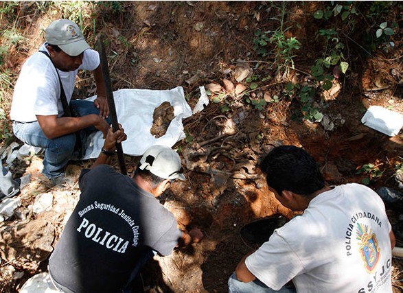 Dijo que entre los 21 cuerpos que están en estado de descomposición, se encontraron los restos humanos de tres mujeres y un cadáver con uniforme de policía municipal.