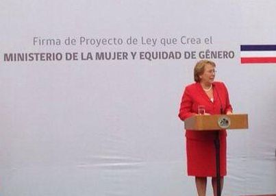 La Presidenta Michelle Bachelet firmó el proyecto de ley para crear el Ministerio de la Mujer y de la Equidad de Género, con lo cual indicó pretende dar el ejemplo en cuanto a la «seriedad» con que el Estado aborda el tema de la igualdad de derechos.