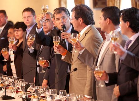 Con un brindis, Correa deseó éxitos a las autoridades entrantes. Ratificó el apoyo a los nuevos funcionarios “que con manos limpias, patrióticamente, con afán de servicio, buscan día a día mejorar el nivel de vida, alcanzar el Buen Vivir de sus comunidades”.