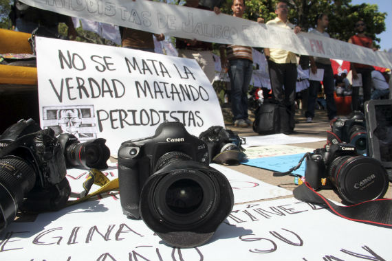 Manifestaciones para exigir que frena la violencia contra periodistas. Foto: Cuartoscuro. Jaime González se convirtió en el primer comunicador muerto en el sexenio de Peña Nieto. Dirigía el sitio web Ojinaga Noticias y fue amenazado por el Cártel de Juárez. El 3 de marzo de 2013 lo mataron de 18 disparos, 15 en el cuerpo y tres en la cabeza.