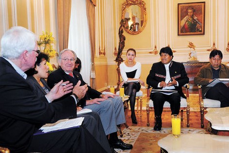 La comisión, compuesta por cinco legisladores, se reunió con el Mandatario desde las 07.00. Aunque no respondieron a consultas de los medios, el jefe de la comitiva, el congresista Tom Harkin, dio a conocer los puntos que abordaron en el encuentro, que duró más de dos horas. “Hemos tenido una muy buena, productiva, franca, amplia reunión con el presidente Morales, sobre todo, sobre cómo vamos a enfrentar el mejoramiento de las relaciones bilaterales”, dijo el congresista demócrata.
