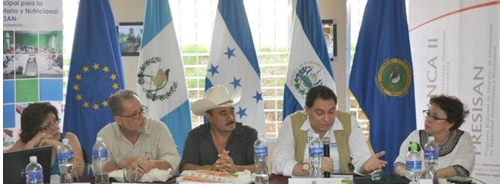 El encuentro, facilitado por el PRESANCA II, fue presidido la Licda. Ana Daisy de Márquez, Directora Ejecutiva del Consejo Nacional de Seguridad Alimentaria y Nutricional de El Salvador; Lic. Mariano Jiménez Talavera, Director de la Unidad Técnica de Seguridad Alimentaria y Nutricional de Honduras; Lic. Luis Enrique Monterroso, Secretario de Seguridad Alimentaria y Nutricional de Guatemala; Licda. Patricia Palma de Fulladolsa, Directora del PRESANCA II, y el Presidente de la Mancomunidad Trinacional Fronteriza Rio Lempa y alcalde del municipio de Sensenti, Ocotepeque, Honduras, señor Ángel Lara.