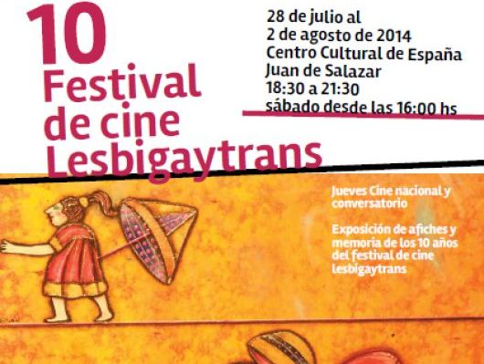 Este lunes de 28 de julio a las 18:30hs se llevará a cabo la inauguración del 10º Festival de Cine Lesbigaytrans en el Centro Cultural de España Juan de Salazar con la presencia de invitados especiales, colaboradores y público en general. Además se tiene previsto reconocimientos, premios, un show de la actriz Perla Roa, una exposición de afiches por los 10 años del festival y un brindis al final de la actividad.
