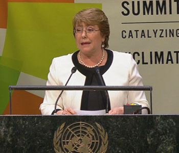 La presidenta chilena, Michelle Bachelet reafirmó este martes, ante la Cumbre del Clima, el compromiso voluntario de Chile de reducir en un 20% sus emisiones para el año 2020.