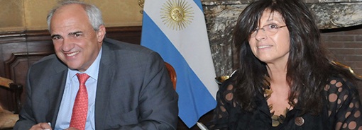 El Secretario General de la Unión de Naciones Suramericanas, Ex presidente Ernesto Samper, y la Subsecretaria de Planificación Territorial de la Inversión Pública del Ministerio de Planificación Federal de Argentina, Gabriela Oporto, firmaron, este miércoles 12 de noviembre, en Buenos Aires, la Carta Compromiso para el desarrollo de un sistema georeferencial COSIPLAN que permitirá potenciar la infraestructura en la región.