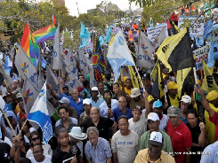 Miles de militantes de partidos políticos y organizaciones de la sociedad civil se concentraron este jueves frente a la Suprema Corte de Justicia, para manifestar su rechazo al rumbo tomado por la Justicia dominicana, que se muestra, según dijeron algunos, incapaz de juzgar a los políticos corruptos.