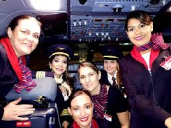 “Compartimos con mucho orgullo la imagen de nuestro primer vuelo comercial tripulado exclusivamente por mujeres Paraguayas”, dice el mensaje que acompaña la fotografía publicada por la aerolínea TAM en su perfil en la red social Facebook.