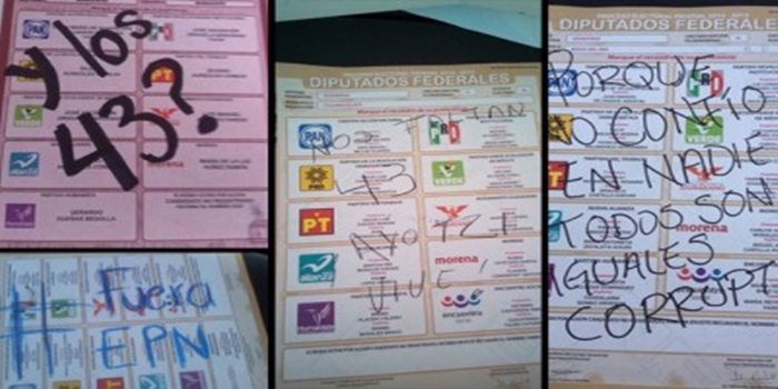 En cuanto a votos nulos, se acumulaba un millón 782 mil 809 sufragios, equivalentes a 4.88 por ciento del total de la votación. La entidad con mayor número de sufragios en esta condición fue el estado de México, con casi 234 mil, seguida de la capital del país, con 220 mil.