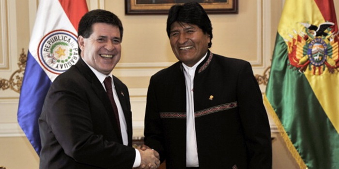 Invitado por el Presidente de la República del Paraguay, Horacio Manuel Cartes Jara, el Presidente del Estado Plurinacional de Bolivia, Evo Morales Ayma, realizó una Visita Oficial al Paraguay, el 29 de junio de 2015, con el propósito de revisar los principales temas de interés común para continuar fortaleciendo la relación bilateral.