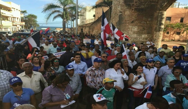Dirigentes de FNP, encabezados por su primer vicepresidente, Pelegrín Castillo; el candidato a Senador y Diputado de esa organización, Vinicio Castillo Semán, y los candidatos a diputados Manuel Núñez, Gregory Castellanos y Gladys Félix, estuvieron presentes supervisando el proceso de recolección de firmas a cargo de un grupo de jóvenes miembros de esa organización política y del Polo Soberano.