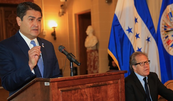 “Agradezco al señor presidente de Honduras, Juan Orlando Hernández, y a todos quienes han depositado su confianza en la OEA para poner en práctica esta iniciativa”, subrayó el representante del organismo.