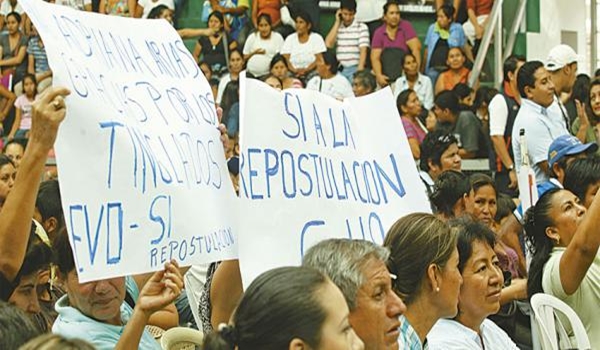 Los sectores masistas aprovechan los actos de entrega de obras o eventos del Gobierno para pedir el voto por el Sí a la modificación del artículo 168 de la Constitución Política del Estado, referida al periodo presidencial. Eso ocurrió ayer en el coliseo del Plan Tres Mil, donde el ministro de Gobierno, Carlos Romero, y el de Defensa, Reymi Ferreira, acudieron a la entrega oficial del subsidio prenatal universal para mujeres que no tienen seguro de salud privado ni público.