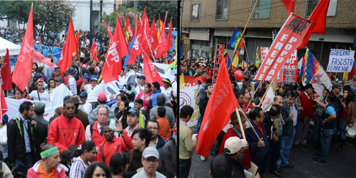 Desde Toctiuco (sur de la capital) salió la Coordinadora de Movimiento Sociales y Campesinos hasta la Plaza de la Independencia, en donde se encontraron con personalidades como el canciller Ricardo Patiño; Doris Soliz, secretaria de la organización, además de integrantes de la organización como Paco Velasco, Óscar Bonilla, entre otros.