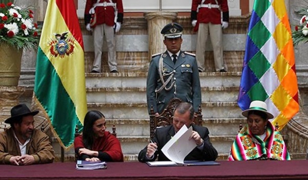 La promulgación se dio a las pocas horas que la Asamblea Legislativa Plurinacional aprobara la normativa. Gonzales asumió el mando porque el presidente Evo Morales emprendió una gira a Europa el pasado lunes y, ayer el vicepresidente Álvaro García, viajó a Perú.