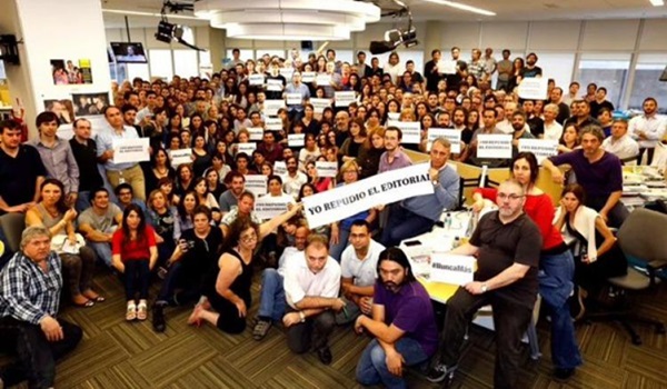 La mayor crítica, sin embargo, fue desde el interior del matutito. Tras una asamblea masiva en la redacción, los trabajadores del diario repudiaron el editorial a través de un comunicado. «Rechazamos la lógica que pretende construir el editorial de hoy, que en nada nos representa al igualar a las víctimas del terrorismo de Estado y el accionar de la Justicia con los castigos a presos comunes y con una ‘cultura de la venganza'», manifestaron y agregaron: «Decimos SI a la democracia, a la continuidad de los juicios por delitos de lesa humanidad y decimos NO al olvido».