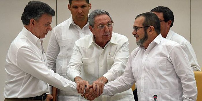 Santos y el jefe de las FARC, Rodrigo Londoño, alias «Timochenko», dijeron en La Habana, al anunciar el acuerdo marco en materia de justicia, que acordaron acelerar los diálogos para que a más tardar el 23 de marzo de 2016 se firme el acuerdo de fin del conflicto armado colombiano.