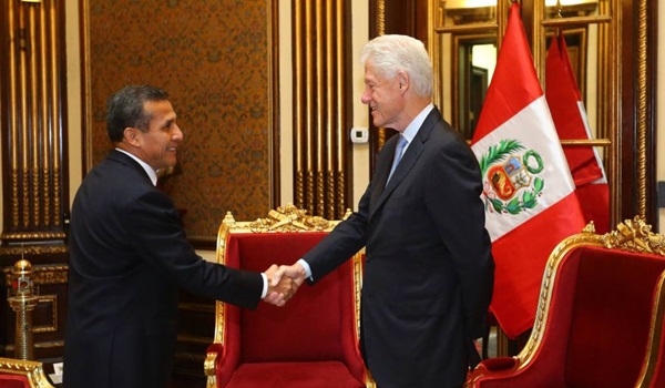 Perú: Ollanta Humala recibió al ex presidente norteamericano Bill Clinton en Palacio de Gobierno