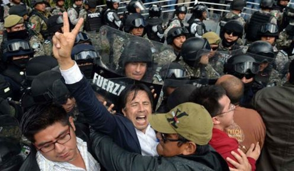 En Boca del Río, grupos de choque –presuntamente policías vestidos de civil– impidieron a los manifestantes el acceso a la Arena Veracruz, para que así los docentes afines al gobierno de Duarte pudieran realizar en paz su trabajo de evaluación.