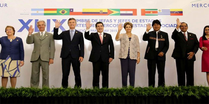 En la reunión del bloque formaron parte los presidentes de Argentina, Mauricio Macri; Brasil, Dilma Rousseff; Uruguay, Tabaré Vázquez; Bolivia, Evo Morales, y Chile, Michelle Bachelet, así como el primer ministro de Guyana, Moses Nagamootoo.
