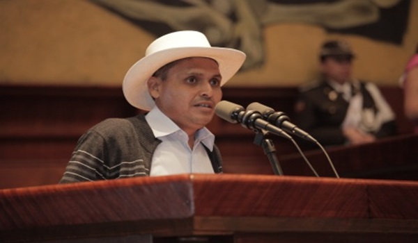 «No garantiza la redistribución de la tierra, asegura ese gran agronegocio en favor de quienes acaparan la tierra», dijo. Él también estuvo en la sede del Legislativo, en Quito.