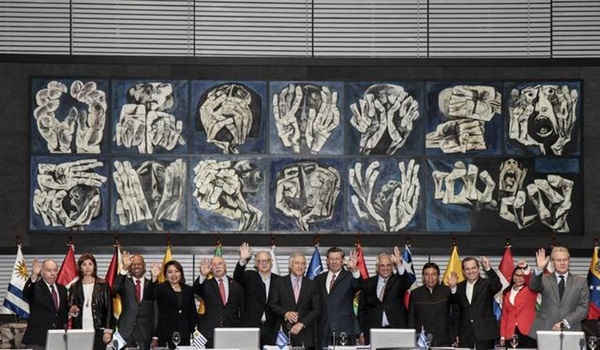 La Unasur, cuya sede está en Quito, está formada por Argentina, Bolivia, Brasil, Colombia, Chile, Ecuador, Guyana, Paraguay, Perú, Surinam, Uruguay y Venezuela.