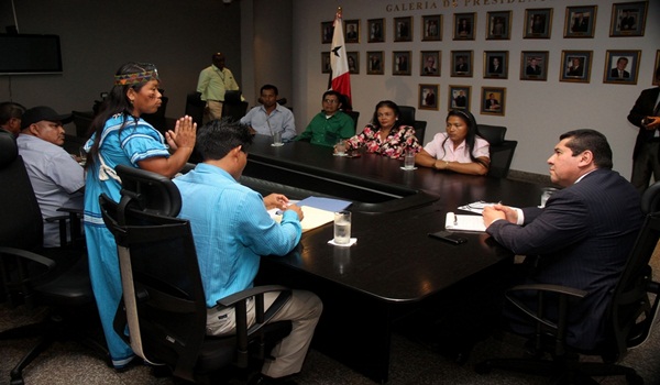 Durante el conversatorio, los miembros del movimiento entregaron al presidente De León un documento que refleja el pliego que incluye la cancelación del proyecto Barro Blanco, las plenas elecciones de sus autoridades autónomas y los beneficios a las personas que fueron lisiadas y golpeadas (de 2010 a 2014) en la pasada administración.