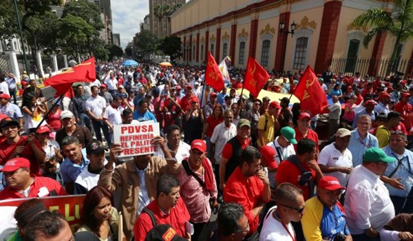 Venezuela: trabajadores petroleros marchan en rechazo al retiro de los cuadros de Chávez y Bolívar