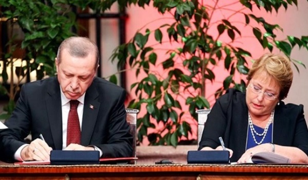 Junto a la presidenta Michelle Bachelet, Erdogan firmó una serie de acuerdos que buscan profundizar y diversificar la relación económica entre ambos países, justo en el mes en el que se cumplen 90 años de relaciones diplomáticas entre Chile y Turquía.