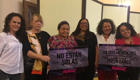 Las premio Nobel de la Paz Rigoberta Menchú (1992), Jody Williams (1997), la coordinadora del movimiento ciudadano Avaaz en América Latina, Ana Sofía Suárez y más de 29 mil latinoamericanos expresaron su solidaridad con 15 mujeres indígenas víctimas de violencia sexual durante el conflicto armado, y esperan que la justicia condene a los dos militares que son procesados.