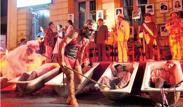 Con el objetivo de manterner la memoria viva frente a los abusos sobre los derechos humanos registrados durante el régimen de Stroessner, se realizó la primera obra teatral itinerante, que la presentó el elenco de Moncho Azuaga a las 19.30, que llevo al público a recorrer varias calles del microcentro capitalino.