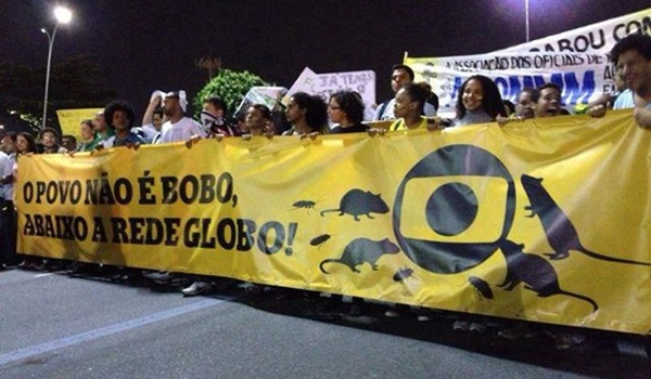El posicionamiento de Globo es previsible, y poir eso mismo no sorprende. Lo sorprendente, entre tanto es la sujeción del gobierno a este imperio ilegal e inm oral de los medios, sumisión esta que quedó patente el jueves 10 de marzo, cuando un ingenuo (¿o inepto?)Ministro de la Secretaría de Comunicación Social Edinho Silva promovió una solemnidad en pleno Palacio del Planalto para a ABERT [especie de sindicato de los medios hegemónicos] e a UNESCO (organismo internacional cuya intromisión en asuntos internos del país jamás podría haber sido permitida) Divulgaron sus falacias e intimidaron a los movimientos pro-legalidad bajo el pretexto de la llamada libertad de expresión (que pare ellos es la libertad de manipulación).