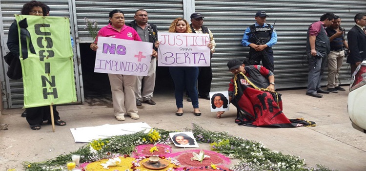 3. Berta Coordinadora General del Consejo Cívico de Organizaciones Populares e Indígenas de Honduras (COPINH) por su trabajo había sido amenazada a muerte, criminalizada por los aparatos represivos del estado. Por lo que la comisión interamericana le otorgo medidas cautelares mismas que el estado de Honduras no implemento la protección de su integridad física.