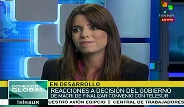 Nodal TV La presidenta de TeleSur reflexiona sobre la decisión del gobierno argentino de desvincularse de la emisora En 30/03/2016 884 Compartir: Volver ArgentinaHernán LombardiPatricia Villegastelesur