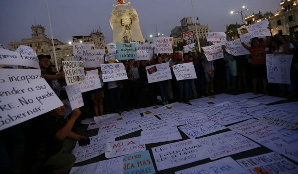 Con una concentración masiva en la Plaza San Martín, diversos ciudadanos mostraron su rechazo a la exprimera dama a través de carteles y pancartas en donde se leían frases como “Keiko no va” y “Fujimori nunca más”.