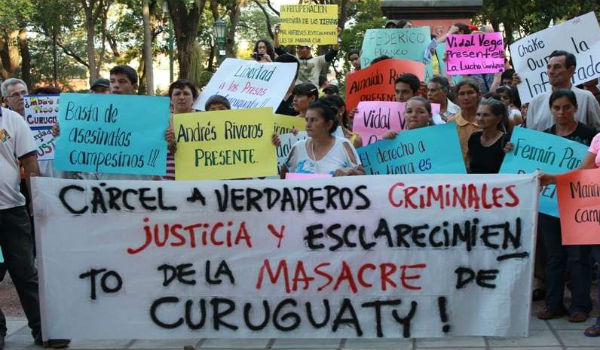 La masacre de Curuguaty, en 2012, provocó la muerte de once campesinos y seis policías, en un tiroteo cuyo origen no ha sido esclarecido por la Fiscalía. Por las muertes, once campesinos están siendo juzgados en Asunción desde el pasado mes de julio.