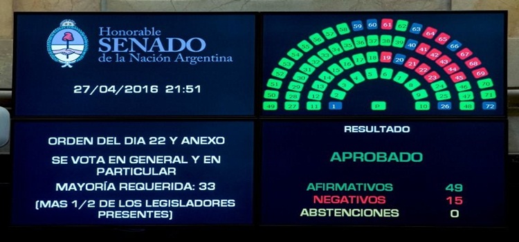 La iniciativa fue defendida por el presidente del bloque de senadores del Frente para la Victoria, Miguel Angel Pichetto, quien anticipó que no se iban a aceptar cambios en el proyecto para eliminar a las micro, pequeñas y medianas empresas de la legislación que se aprobó esta noche.