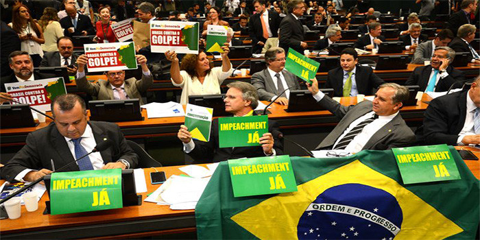Lo que acaba de ocurrir en Brasil este fin de semana parece confirmar esta especie: un gobierno que llegó al poder con 54 millones de votos ciudadanos, es sustituido por el de 367 diputados. Diputados que cuentan claramente con el respaldo de los emporios mediáticos, de las cámaras empresariales y financieras (por lo demás, y dicho sea de paso, altamente beneficiadas de las políticas del Partido de los Trabajadores en la última década), de los terratenientes asesinos de campesinos, del Tribunal Federal y unos cuerpos policiales herederos de la última dictadura. Diputados reunidos en una Cámara presidida por un sujeto –Eduardo Cunha– involucrado él mismo en investigaciones por crímenes diversos incluyendo cuentas ocultas en guaridas fiscales (porque eso es lo que son: no paraísos).