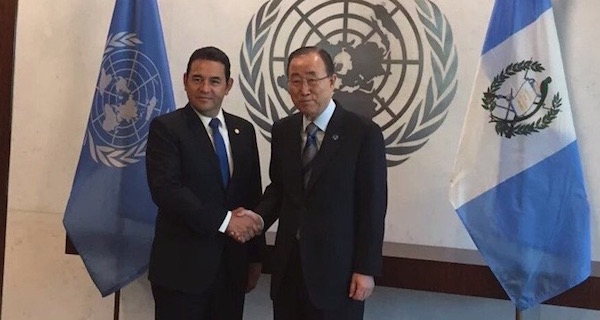 El presidente Jimmy Morales entregó ayer una carta al secretario general de las Naciones Unidas, Ban Ki-moon, mediante la cual solicitó que se extendiera el mandato de la Comisión Internacional contra la Impunidad en Guatemala (CICIG), en el país hasta septiembre de 2019.