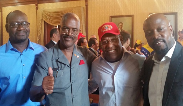 SVG’s representative, Sen. Carlos James, St. Lucia’s Minister of Agriculture, Moses Jean Baptiste, and President of the Grenada Senate, Chester Humphrey with Venezuela’s Vice President, Aristóbulo Istúriz.