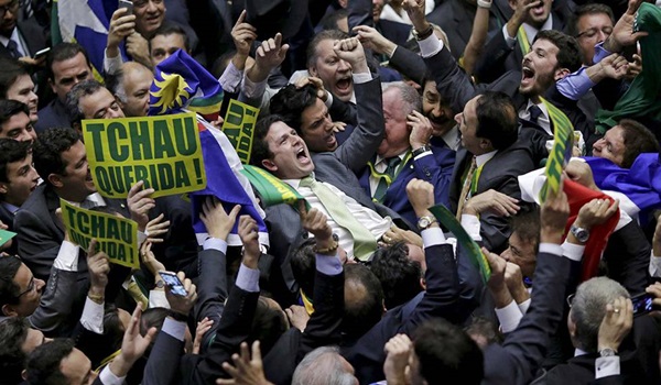 Por otro lado, el parlamento brasileño evidenció otro rasgo que no le es exclusivo: el de su dominio por parte de grupos corruptos y corruptores que han hecho del Estado su botín. La corrupción no es un fenómeno nuevo en nuestro continente, y se puede decir sin tapujos que casi constituye un rasgo del perfil de nuestros grupos dominantes a través de la historia. La peyorativa denominación de ciertas naciones como Banana Republics, por ejemplo, hizo gráfica alusión a este hecho. Estos grupos, que siempre buscaron cobijarse y lucrar a la sombra del aparato de Estado están presentes desvergonzadamente en el parlamento brasileño, enarbolando banderas de honestidad y eficiencia que, ni lejanamente, tienen derecho a enarbolar.