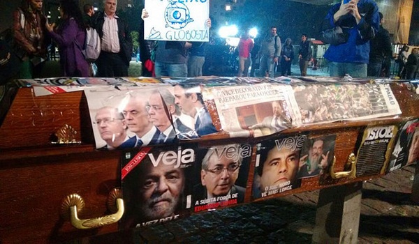 Em São Paulo, o ato se concentrou no começo desta noite no vão do Museu de Arte de São Paulo (Masp) e marchou em direção ao prédio da Gazeta, onde fica a antena da Rede Globo. Cerca de 50 pessoas participaram do «cortejo fúnebre», protagonizado por um caixão em que estavam coladas capas de revistas e logotipos de emissoras de TV.