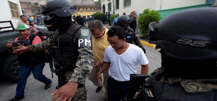 Bajo fuertes medidas de seguridad en los predios de los tribunales de justicia, fueron trasladados este domingo hasta el interior de los juzgados los imputados: Douglas Bustillo, oficial militar retirado; Mariano Díaz Chávez, un mayor del Ejército hondureño; Edilson Duarte Meza, presunto sicario; y Sergio Rodríguez Orellana, empleado de la hidroeléctrica “Agua Zarca”, un proyecto que pretende desarrollar la empresa Desarrollos Energéticos S.A. (Desa), en el occidente del país.