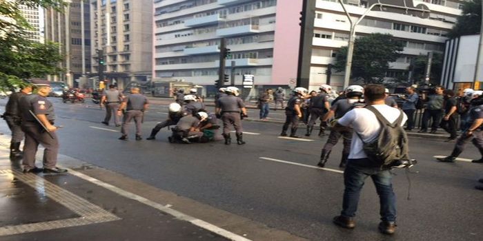 Em nota, o MTST disse que a “Polícia Militar do estado de São Paulo reprime com violência ocupação realizada agora a pouco pela Frente Povo Sem Medo e o MTST no escritório regional da Presidência da República”.