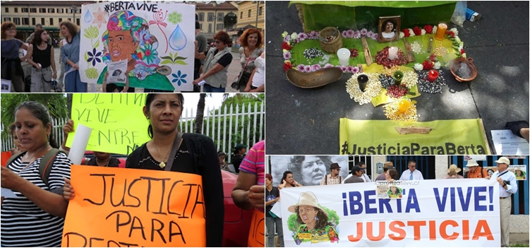 Defensores de derechos humanos y del ambiente se manifestaron este miércoles en 17 países del mundo, exigiendo justicia en el caso de la muerte de la extinta coordinadora del Consejo Cívico de Organizaciones Populares e Indígenas de Honduras (Copinh), Berta Cáceres Flores.