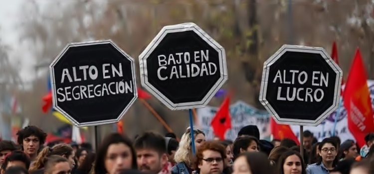 Desde los 90 en adelante, expresan los estudiantes, la postura de los gobiernos ha apuntado a legitimar la acumulación por parte del empresariado a costa de la educación. Así, se han visto favorecidas empresas que forman parte de holdings internacionales, como es el caso del Grupo Laureate y su presencia en la formación superior. “Ellos reciben un importante aporte del Estado por el CAE”, consigna Gálvez.