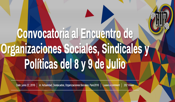 Colombia: convocatoria al Encuentro de Organizaciones Sociales, Sindicales y Políticas del 8 y 9 de Julio