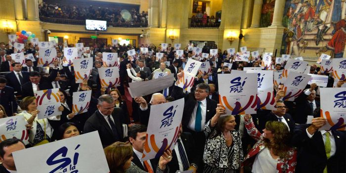 Al término de su intervención, la gran mayoría de los parlamentarios que asistieron al evento, aplaudieron al mandatario y entonaron a una sola voz el clamor de «Sí a la paz».